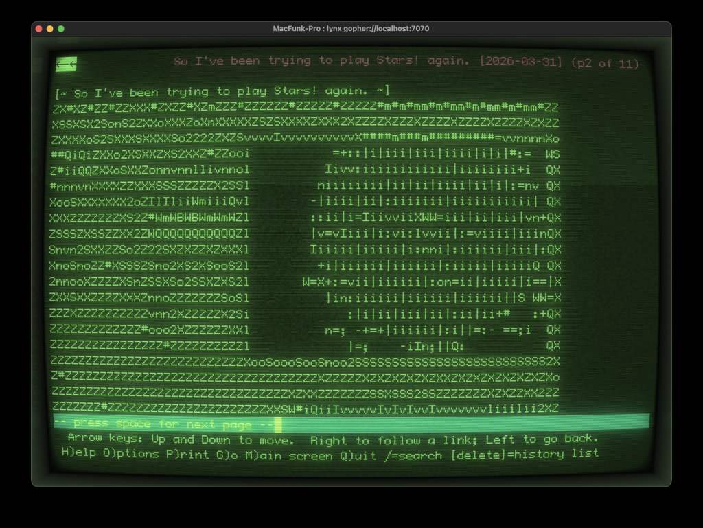 “You know what I think about when I think about Gopher? I think — and bear with me here, because this is important — I think we had something. In 1993. Something real. Something… textual. And then. We. Lost it. GopherPress is… well. It’s something. It’s definitely that.”